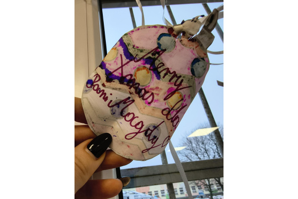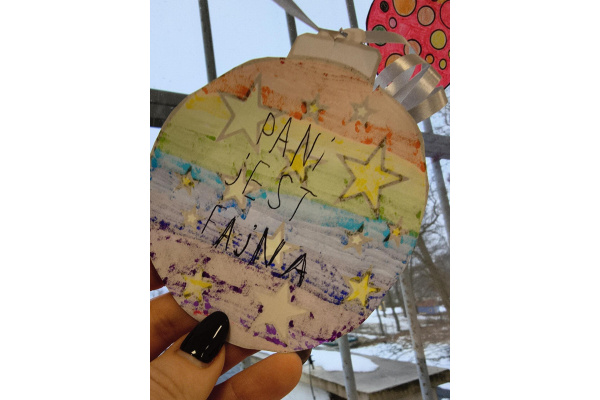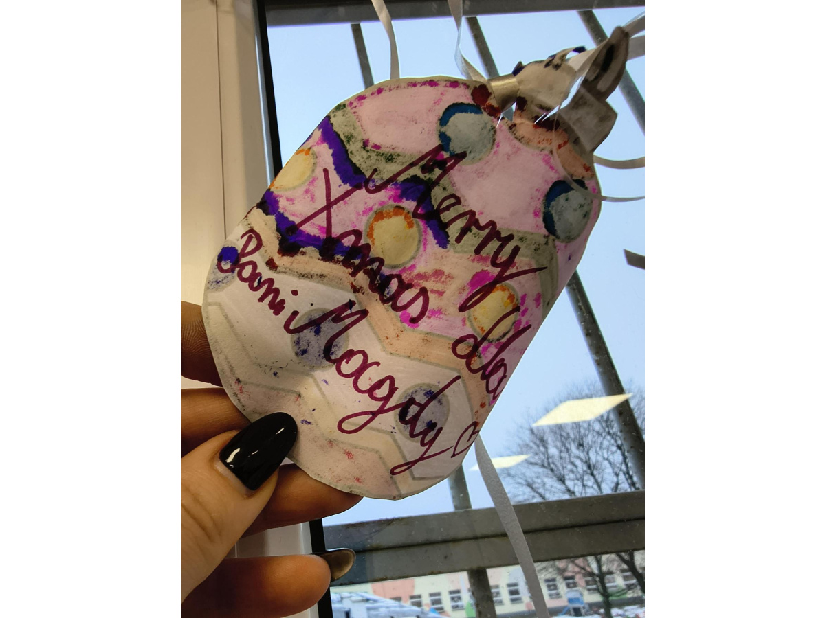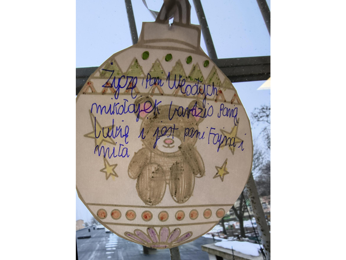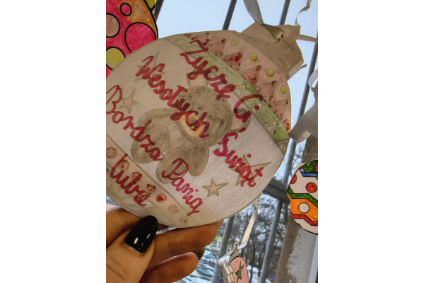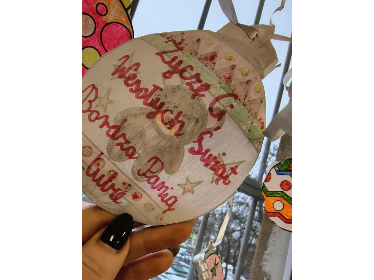 Podczas zajęć „ABC emocji” trzecioklasiści odkrywali, że dobre słowa potrafią rozświetlić dzień tak samo jak świąteczne lampki. Własnoręcznie przygotowali kolorowe bombki z życzeniami i miłymi słowami– pełne wdzięczności, serdeczności i ciepłych, świątecznych pozdrowień. Takie drobne gesty i uprzejme komunikaty wzmacniają poczucie bycia ważnym, budują więź i tworzą w klasie atmosferę życzliwości. Dzięki temu jedna z sal na Mikołajki stała się nie tylko pięknie udekorowana ale też wypełniona dobrą energią i wzajemnym szacunkiem.