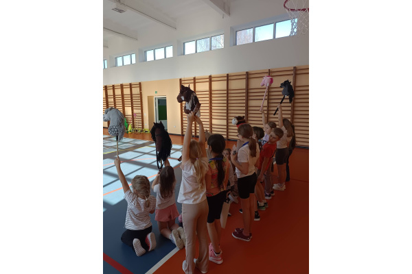 Dzisiaj w naszej szkole odbyły się szkolne zawody sportowe w konkurencji hobby horse dla uczniów klas 1–4. W wydarzeniu wzięło udział wielu uczestników, którzy z dużym zaangażowaniem pokonywali tor przeszkód przy użyciu koników hobby horse. Uczniowie musieli wykazać się sprawnością, szybkością oraz dobrą koordynacją ruchową. Każdy uczestnik starał się jak najlepiej pokonać trasę i zdobyć jak najlepszy wynik.
