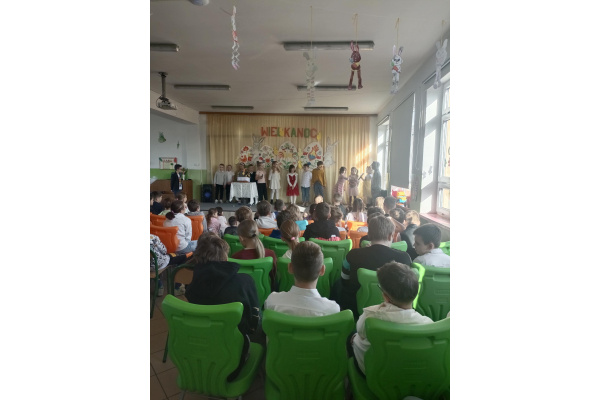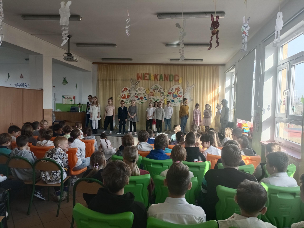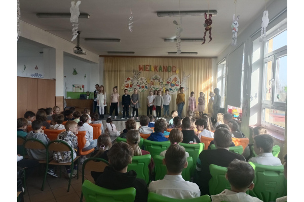 W dniu poprzedzającym wiosenną przerwę świąteczną w naszej szkole odbył się uroczysty Apel Wielkanocny. Spotkanie wprowadziło społeczność szkolną w radosny nastrój nadchodzących Świąt Wielkanocnych. Mali artyści z klasy pierwszej zaprezentowali program bogaty w treści nawiązujący do tradycji i symboliki świąt.