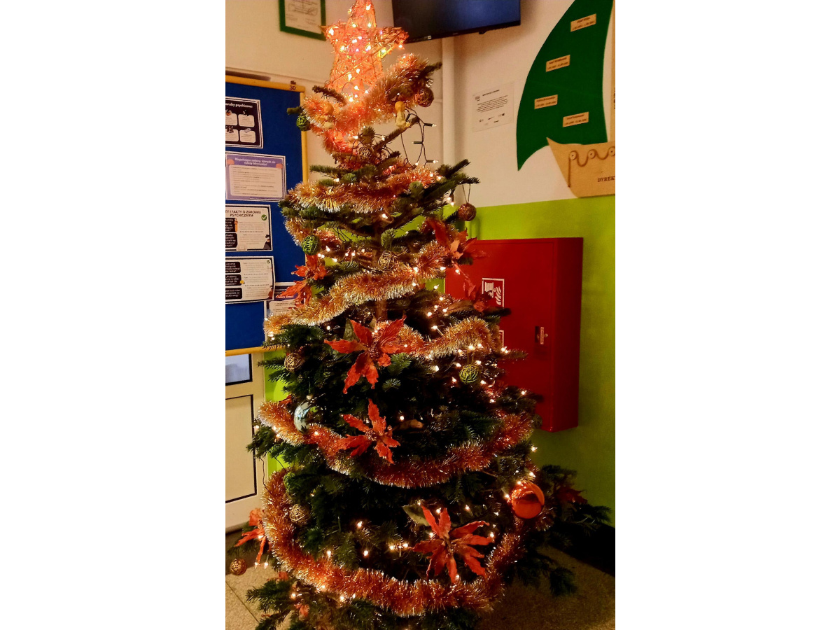 Serdecznie dziękujemy Pani Barbarze Zarębie za dostarczenie dziś wraz z mężem do naszej szkoły pięknej, żywej choinki, która stanęła w głównym holu szkoły.