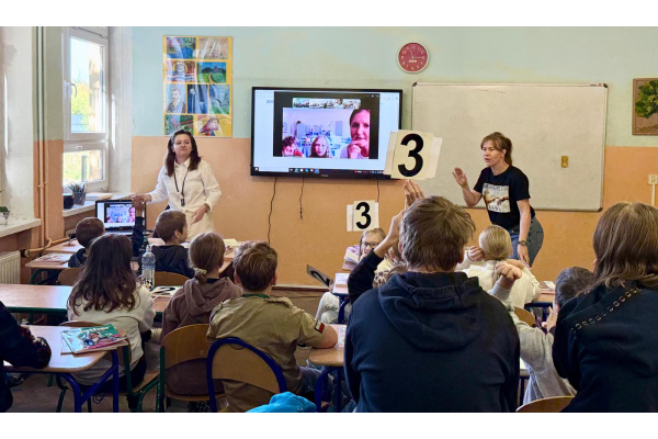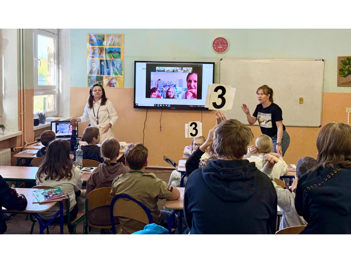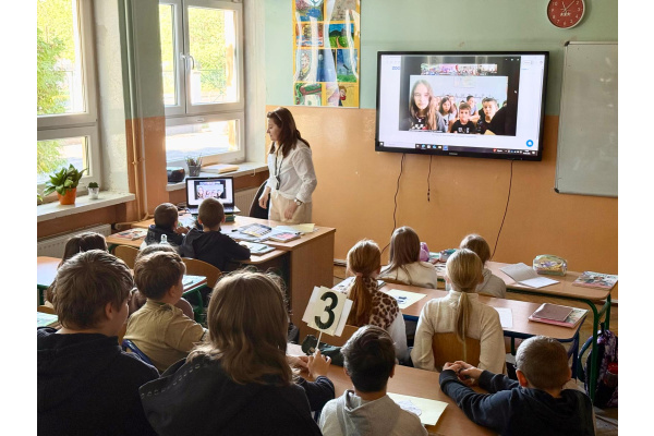 To jednak nie koniec językowych przygód! Nasza szkoła bierze udział w międzynarodowym projekcie eTwinning pt. „Voices Across Borders”, dzięki któremu uczniowie mieli okazję uczestniczyć w spotkaniu online z rówieśnikami z innych krajów -rozmawiali po angielsku i uczyli się od siebie nawzajem. To była niesamowita lekcja praktycznego języka i współpracy!