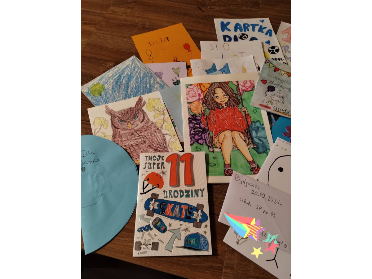 Zakończyła się w szkole akcja "Kartka dla Janka". Uczniowie naszej szkoły wykonali piękne kartki urodzinowe i przekazali do Pani Edyty Brygmann, która wysłała je do Janka, chorego chłopca, którego marzeniem było otrzymać kartki z życzeniami od innych dzieci z Polski w dniu swoich urodzin. Dziękujemy wszystkim za udział w akcji i życzymy Jankowi dużo uśmiechu, radosnych chwil i przede wszystkim zdrowia!