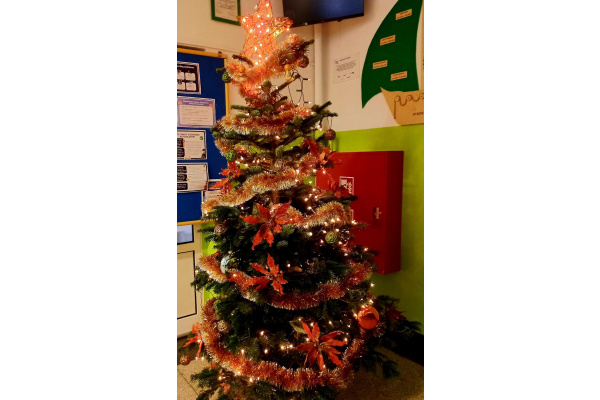 Serdecznie dziękujemy Pani Barbarze Zarębie za dostarczenie dziś wraz z mężem do naszej szkoły pięknej, żywej choinki, która stanęła w głównym holu szkoły.