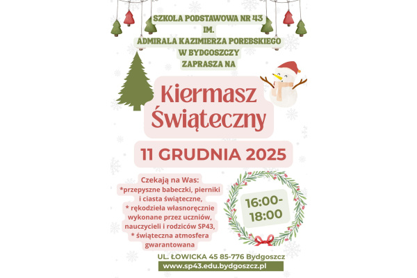 Zapraszamy na KIERMASZ ŚWIĄTECZNY 11 grudnia 2025 (czwartek) w godz. 16.00-18.00