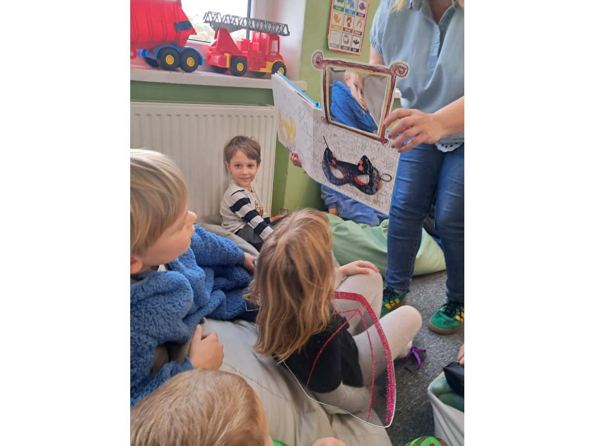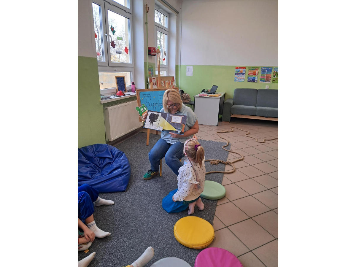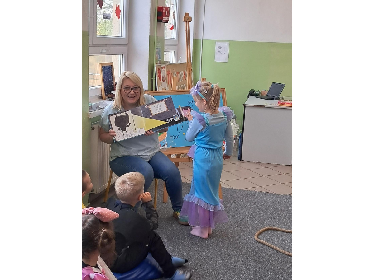 Następnie wysłuchali bajki zaprezentowanej w atrakcyjnej formie teatrzyku kamishibai.