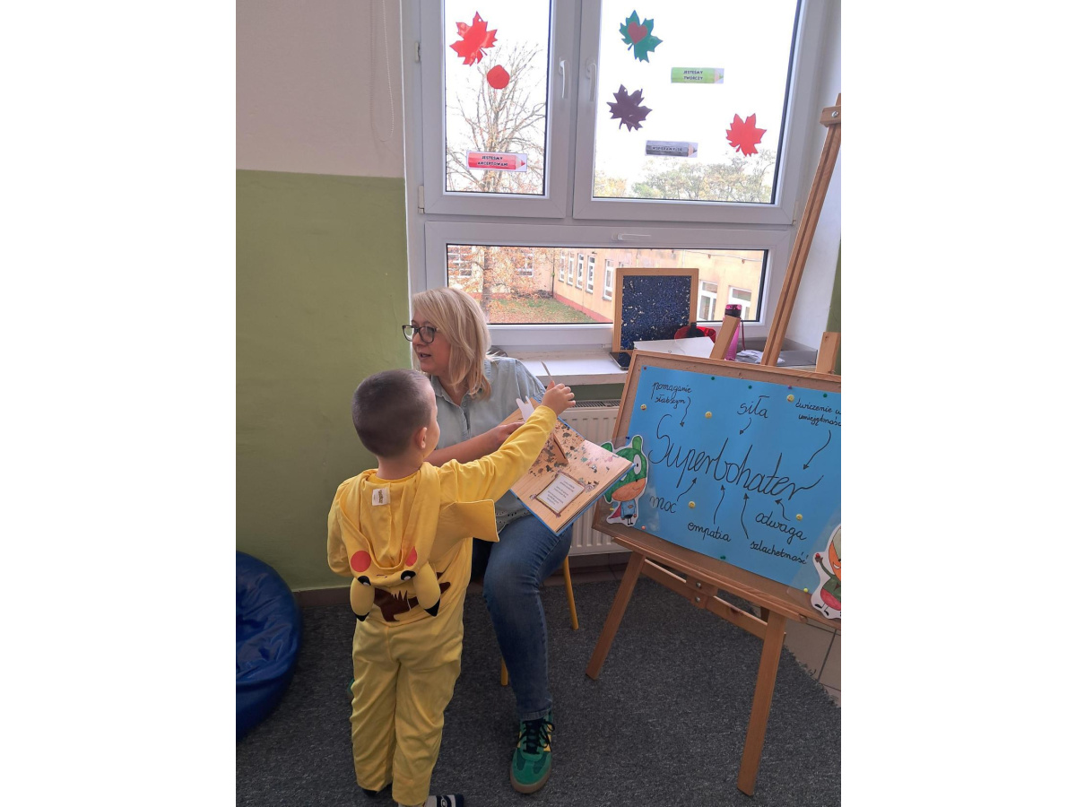 Dzieci, które tego dnia przebywały w świetlicy ozdabiały maski – zgodnie z twierdzeniem, że "każdy z nas ma supermoc", a na zakończenie intensywnego dnia relaksowały się podczas bajkowego seansu z popcornem.