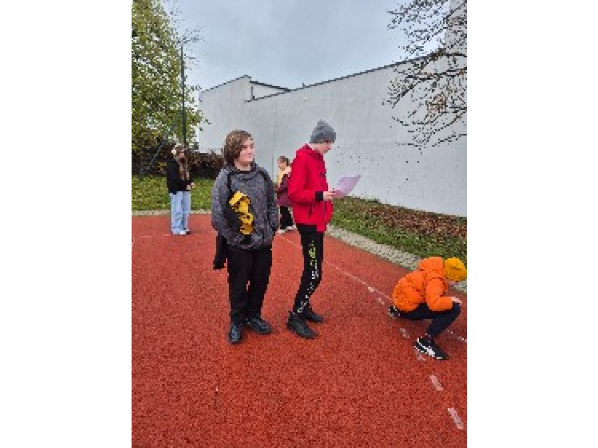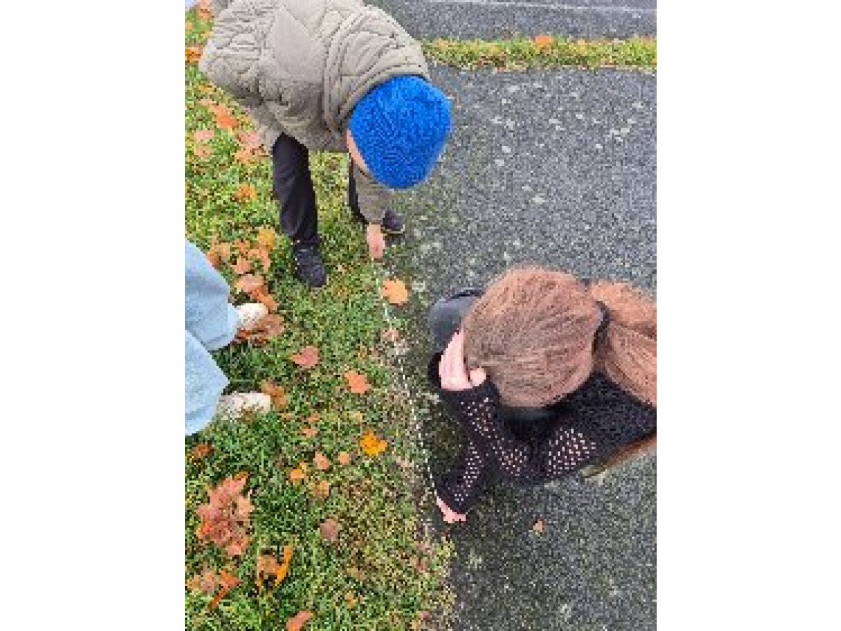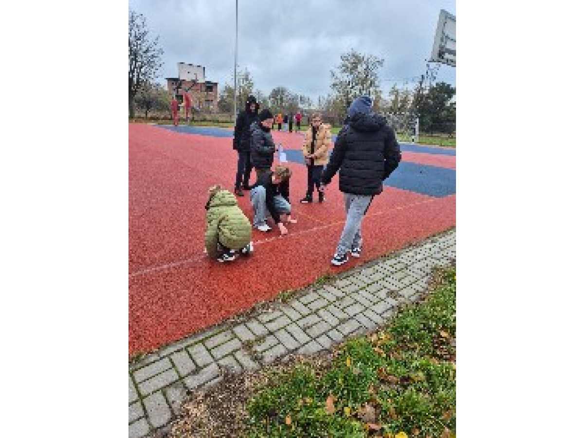 Młodsi uczniowie z klasy 4 z zapałem pomagali w pomiarach, natomiast starsi z klasy 7 zajęli się obliczeniami powierzchni, ilości potrzebnych nasion oraz szacowaniem kosztów całego przedsięwzięcia. Wspólna praca pozwoliła wszystkim lepiej zrozumieć, jak wiedza z matematyki i przyrody może być wykorzystywana w praktyce.