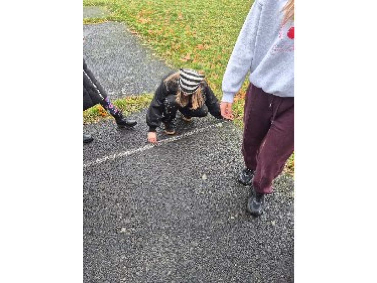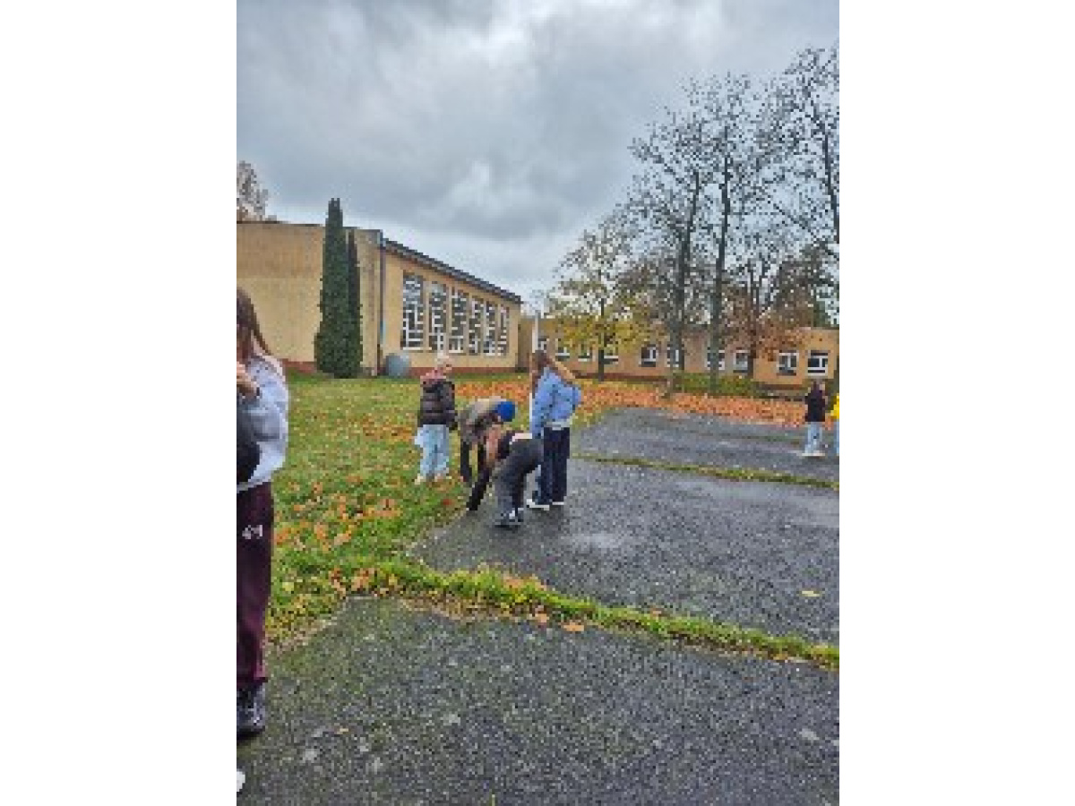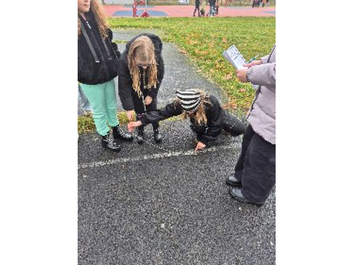 Młodsi uczniowie z klasy 4 z zapałem pomagali w pomiarach, natomiast starsi z klasy 7 zajęli się obliczeniami powierzchni, ilości potrzebnych nasion oraz szacowaniem kosztów całego przedsięwzięcia. Wspólna praca pozwoliła wszystkim lepiej zrozumieć, jak wiedza z matematyki i przyrody może być wykorzystywana w praktyce.