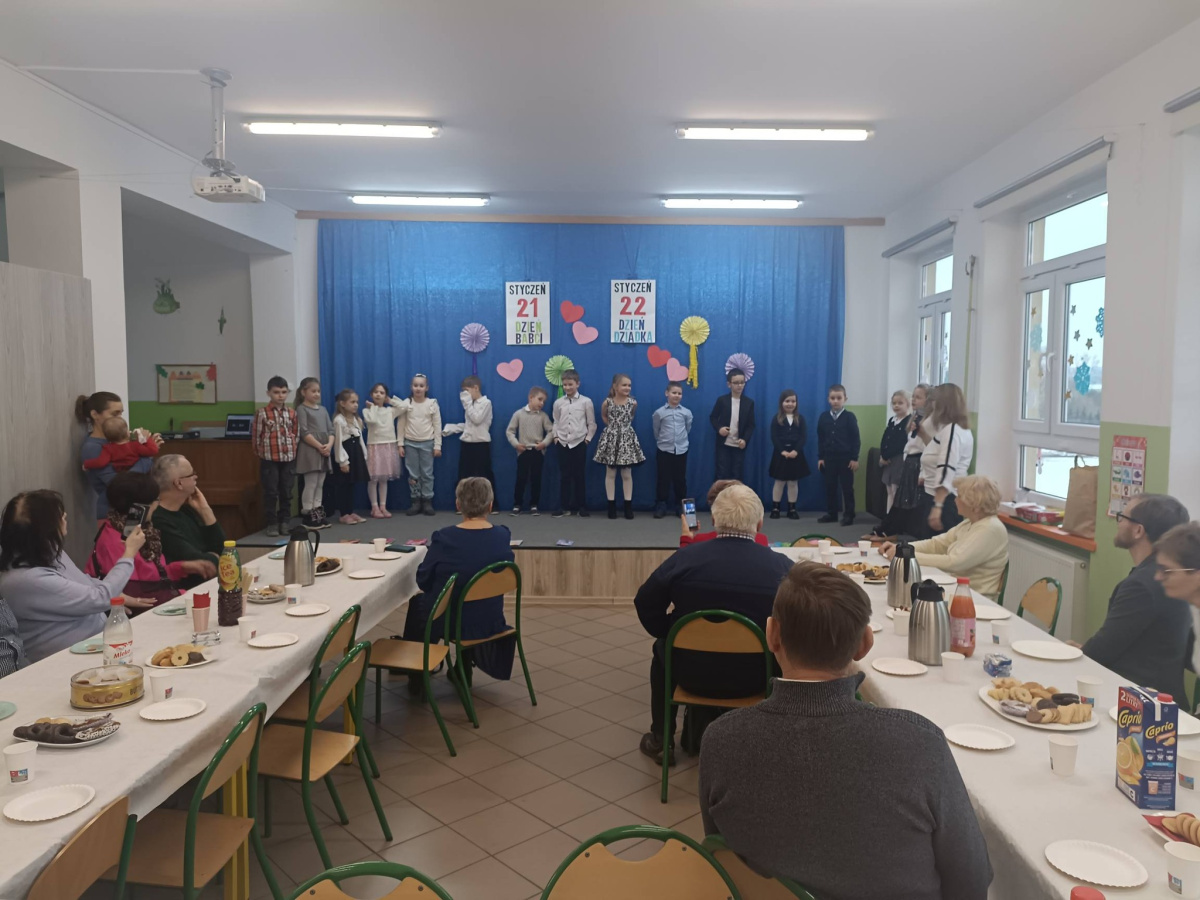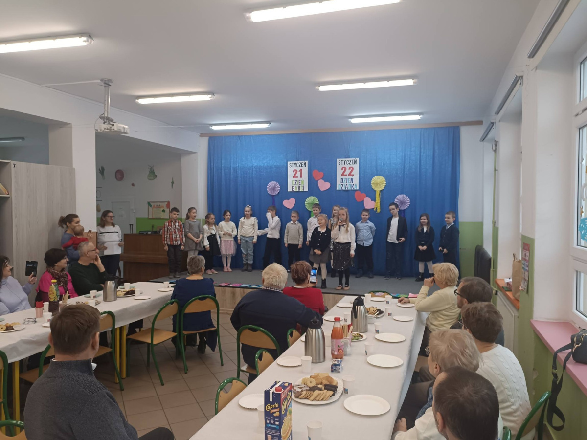 W czwartek uczniowie klasy pierwszej zaprosili swoje babcie i dziadków na wyjątkowe spotkanie z okazji Dnia Babci i Dziadka. Dzieci przygotowały krótki występ artystyczny – wierszyki, piosenki i własnoręcznie wykonane laurki. Spotkanie przebiegło w radosnej, ciepłej atmosferze i było piękną okazją do wspólnego świętowania oraz okazania wdzięczności i miłości najbliższym.