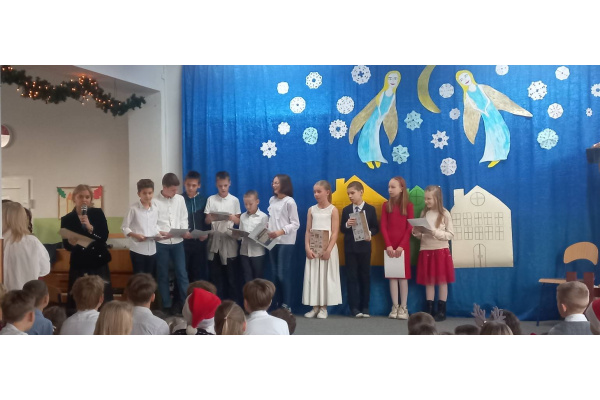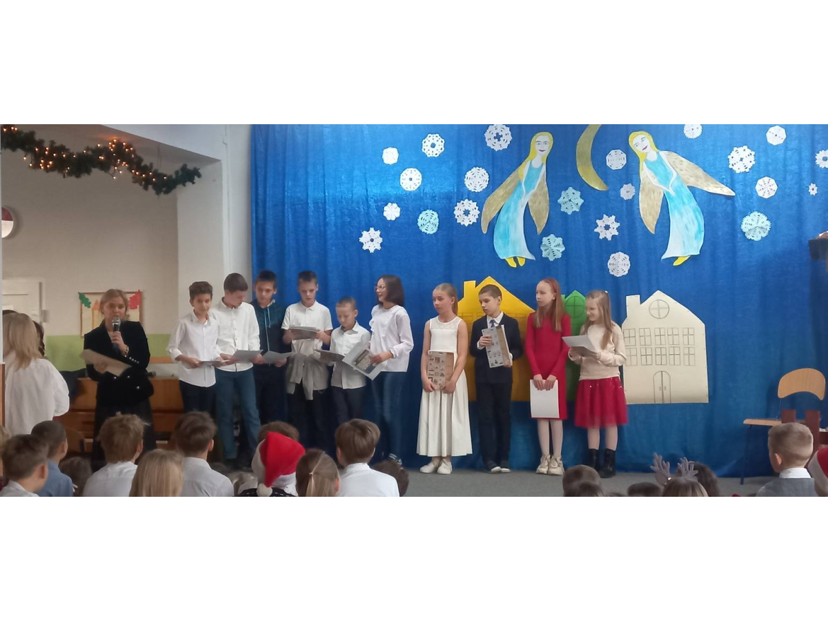 Po występie ogłoszono wyniki szkolnych konkursów. Pani Ewa nagrodziła uczniów klas 1–3 za konkurs grafiki komputerowej , a p. Joanna wyróżniła uczniów klas 4–8 za konkurs plastyczny "Anioły".