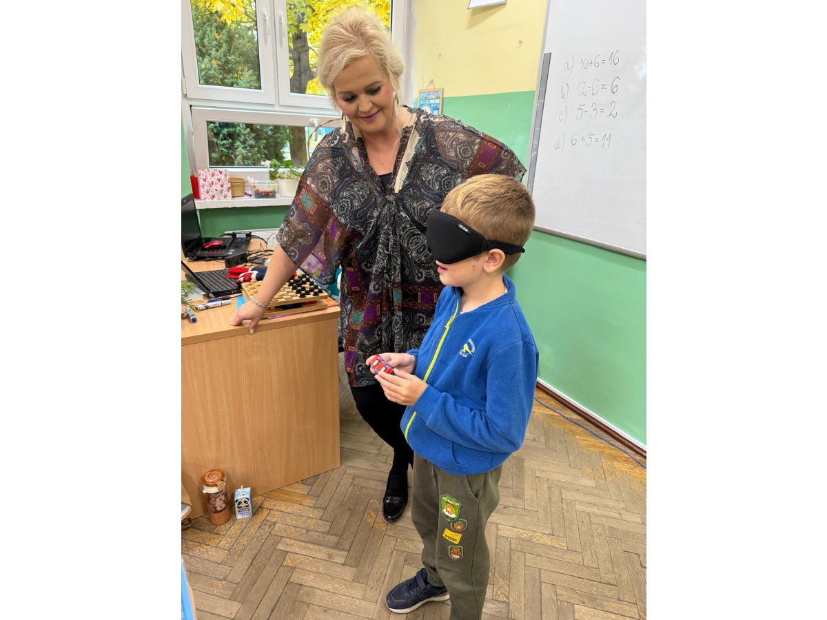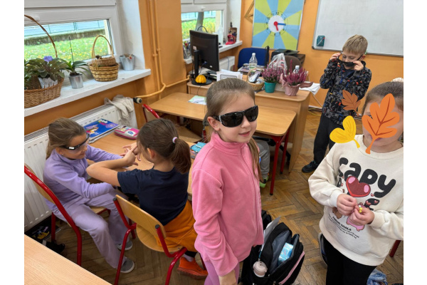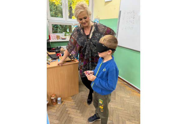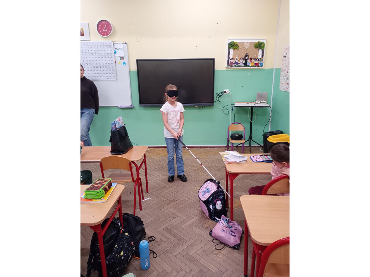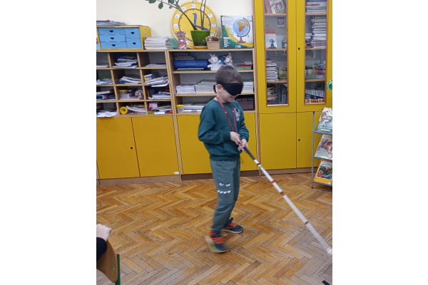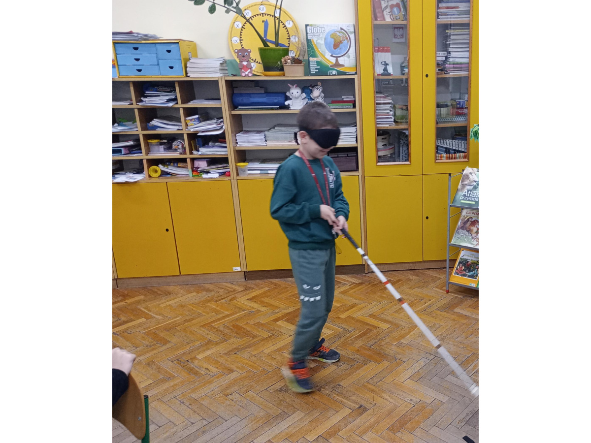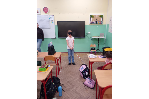 Pod koniec chętni uczniowie z zasłoniętymi oczami mogli spróbować poruszać się po klasie przy pomocy białej laski, która jest symbolem osób niewidomych. Celem warsztatów było przypomnienie o obecności osób słabowidzących i niewidomych w społeczeństwie oraz o potrzebie wsparcia i zrozumienia ich sytuacji.