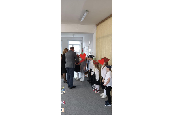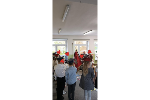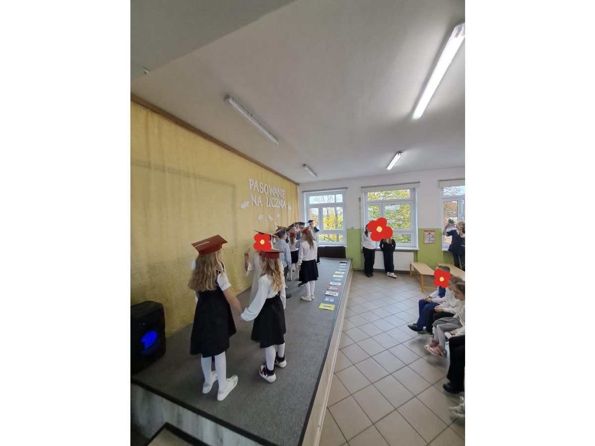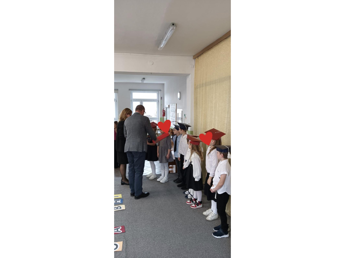 Podczas ceremonii dzieci zaprezentowały krótki program artystyczny - recytowały wiersze, śpiewały piosenki i pokazały czego się nauczyły. Następnie Pan dyrektor symbolicznym ołówkiem dokonał aktu pasowania, a dzieci złożyły ślubowanie, obiecując być pilnymi i uczciwymi uczniami. Uroczystość zakończyła się wręczeniem pamiątkowych dyplomów i drobnych upominków.