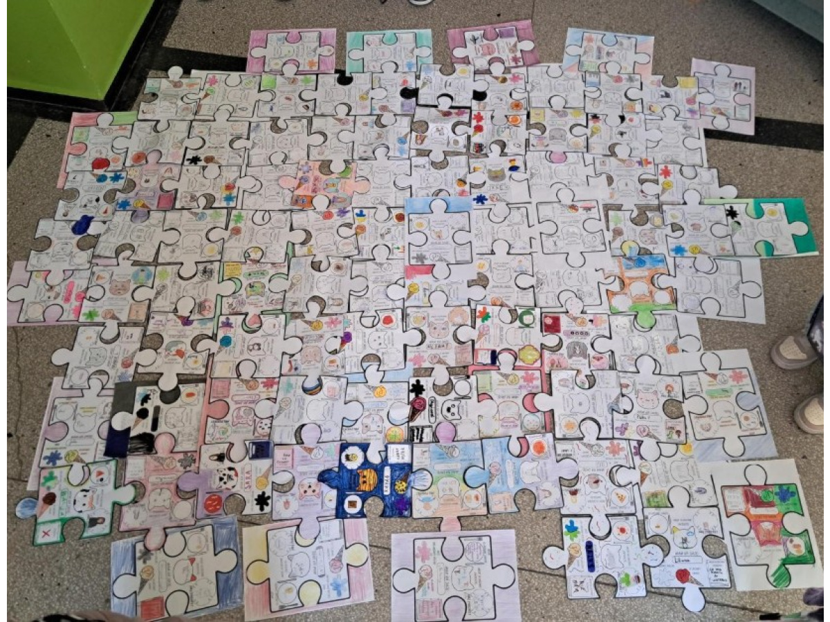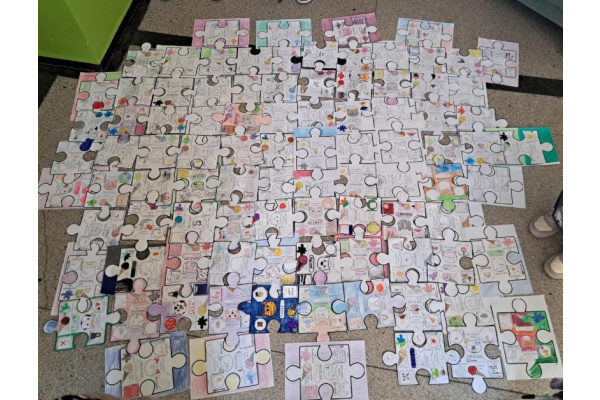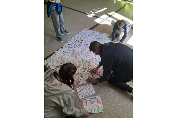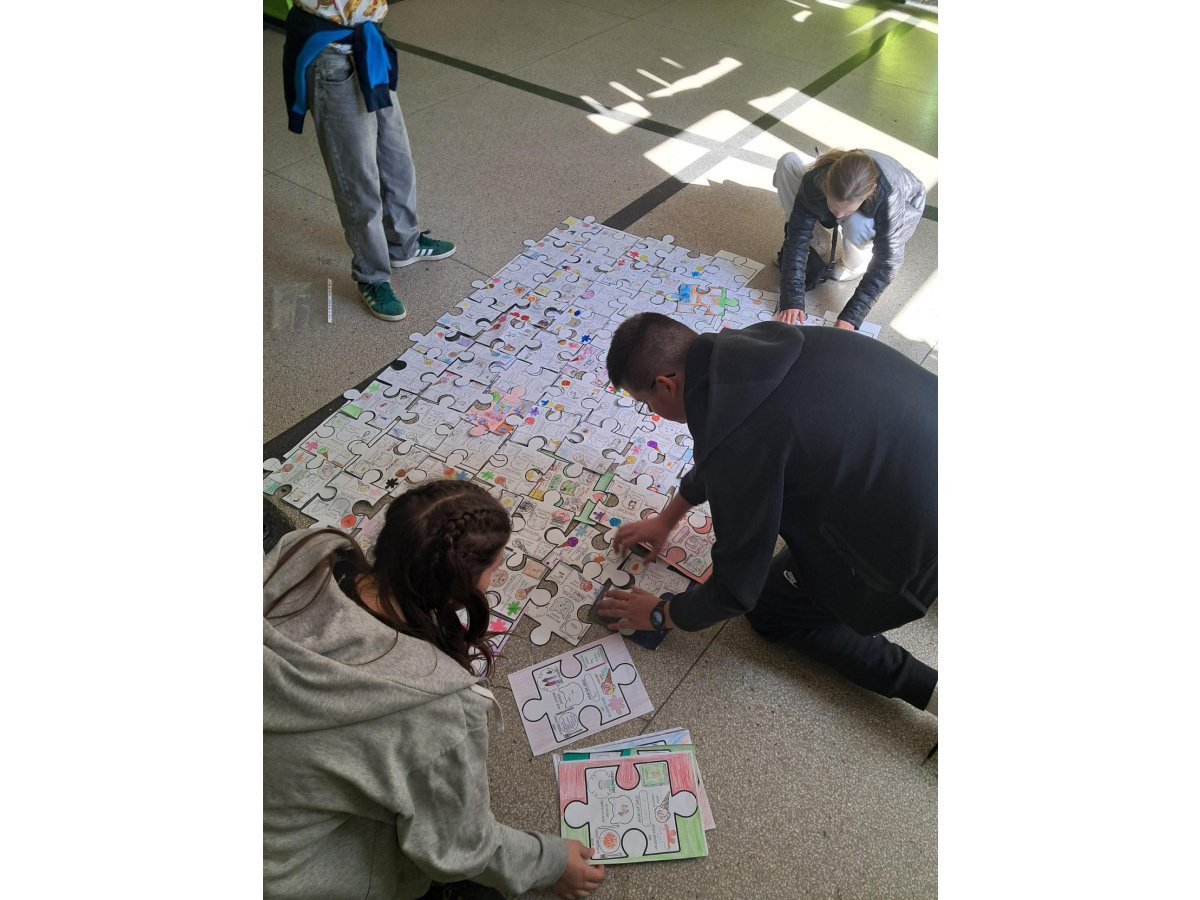 Puzzle, które stworzyliśmy, symbolizują naszą różnorodność – każdy z nas jest inny, ale razem tworzymy pełną, harmonijną całość. To inspirujące połączenie Tygodnia Szczęścia i Tygodnia Przeciwdziałania Przemocy Rówieśniczej.