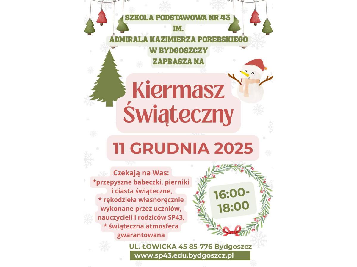 Zapraszamy na KIERMASZ ŚWIĄTECZNY 11 grudnia 2025 (czwartek) w godz. 16.00-18.00
